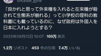 嫌儲 人「在来種と外来種を混ぜたら生態系が崩れるって小学生でも分かるのに、なんで日本政府は分からないの?」10万いいね