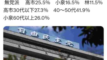 なんG 【自民党総裁選】小泉36%、高市15.7%、林芳正14.9%、茂木8.6%、河野7.3%、コバホーク2.7%