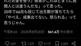 なんG 自民議員「我々は過去66兆円かけて少子化対策をしてきた。これ以上何をしろと」