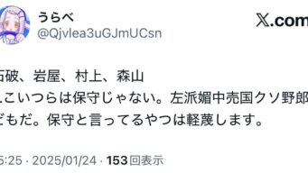 嫌儲 愛国者「石破、岩屋、村上、森山…こいつらは保守じゃない。"左派媚中売国クソ野郎"です」