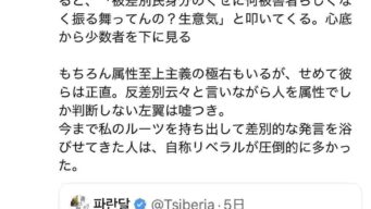 嫌儲 ナザレンコ「左翼は本物のレイシスト。マジで人を属性でしか見れない。」