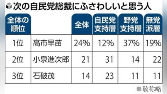 嫌儲 読売新聞「世論調査の結果、国民の過半数以上が自民党総裁選の前通しを求めてることが分かりました」