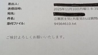 嫌儲 立憲民主党議員、国民からの声を「完全な嫌がらせ」と断定