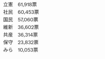 嫌儲 政党支持率 自民33.8%(+10.3) 国民9.6%(-0.9)立民8.8%(-1.4)参政8.1%(-2.8 )共同通信
