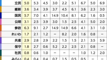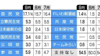 嫌儲 【政党支持率】自民17.1%(△1.4)参政5.9%(▲1.7)立民5.3%(▲0.2)国民3.4%(▲3.4)