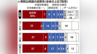 嫌儲 39歳以下の投票先自民党33%国民民主党14%参政党6%チーム未来5%中道改革3% 読売新聞世論調査