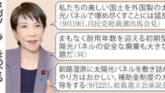 なんG 高市早苗「ニッポンの美しい国土が外国製のソーラーパネルで覆われている」太陽光発電規制へ