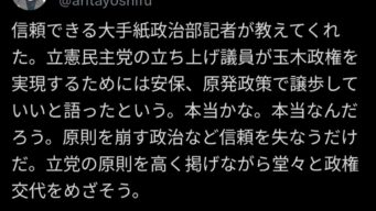 嫌儲 【政権交代】立憲が「脱原発」「安保法制廃止」を捨てられるかどうかに全てがかかっていることが判明!