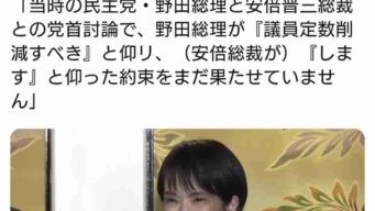 嫌儲 高市早苗「野田さんも推し進めようとしていた議員定数削減、やります!!」