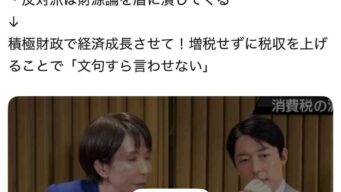 嫌儲 高市早苗「消費税減税は税収が増えてから。積極財政は他でやる。増えたら財源論の人黙らせられるから次の選挙で消費税減税を掲げる」