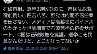 嫌儲 高橋洋一先生「石破は選挙3連敗なのに、なぜ辞めないんだ!」「選挙こそ民意なんだけど、どこか狂ってないか?」