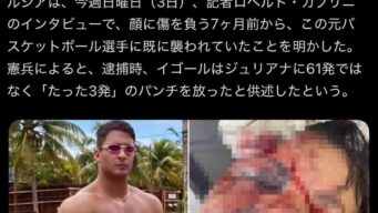 なんG ブラジルのバスケ選手(199cm130kg)彼女の顔面に61発の男女平等パンチを食らわせてしまう