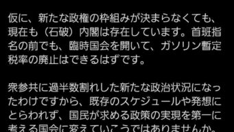 嫌儲 石破総理 「政府が誤った判断をせぬよう、歯止めの役割を果たすのが議会とメディアです」