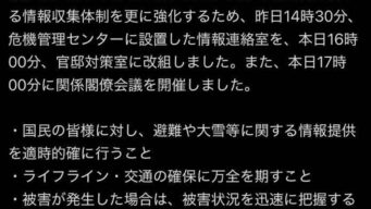 なんG 高市総理「大雪で不要不急の外出控えて」 ツイ民「不要不急の解散を控えろよ😁」