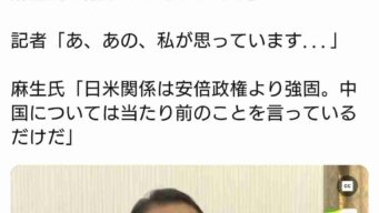 嫌儲 麻生太郎「高市の発言は問題ない。中国に文句言われるぐらいがちょうどいい」